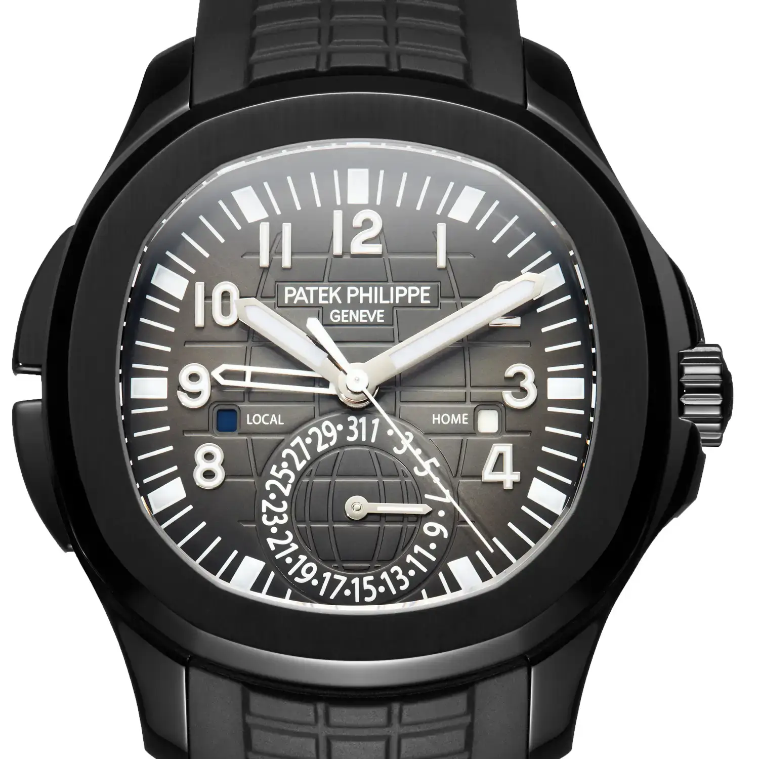 Die Patek Philippe Aquanaut Travel Time ist eine der, wenn nicht die nützlichste Komplikation für einen erfahrenen Reisenden. Mit den Drückern auf der linken Gehäuseseite lassen sich die beiden Zonen unabhängig voneinander einstellen. Mit phänomenaler Leichtigkeit unabhängig voneinander einstellen, und auf dem Zifferblatt wird angezeigt, ob Du die Heimatzeit oder die Ortszeit anzeigen willst.