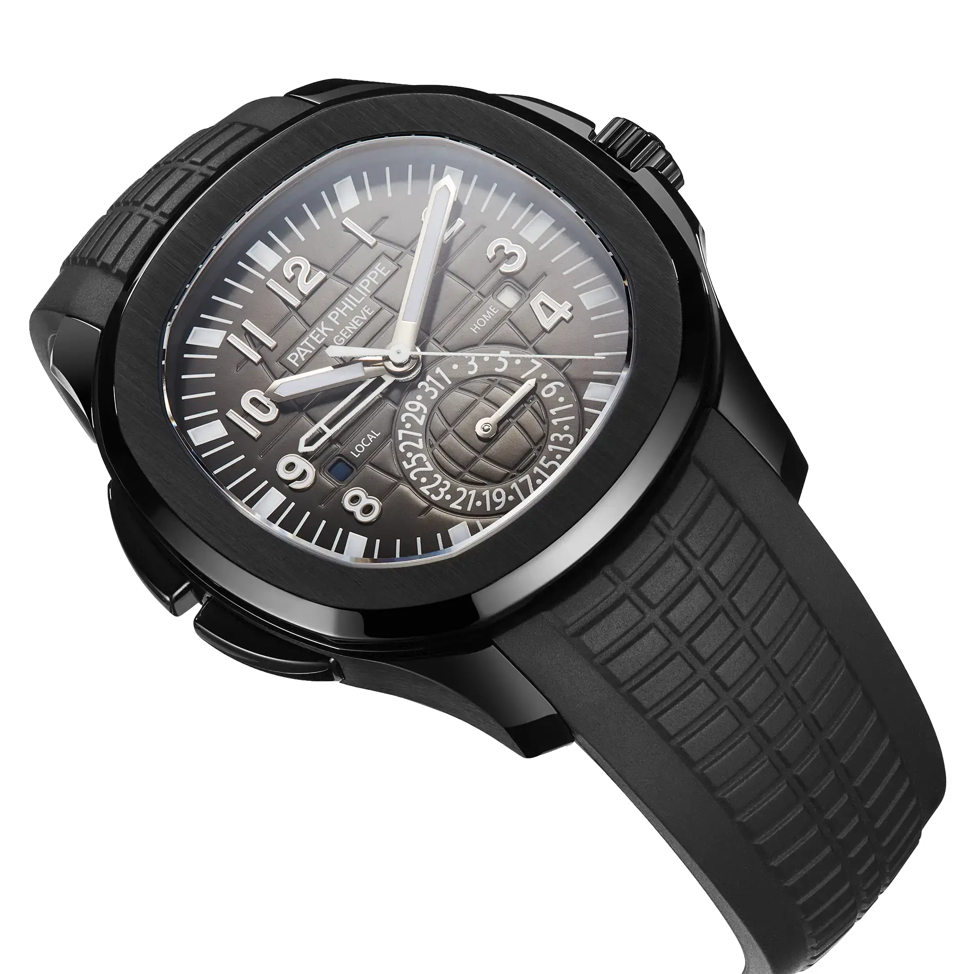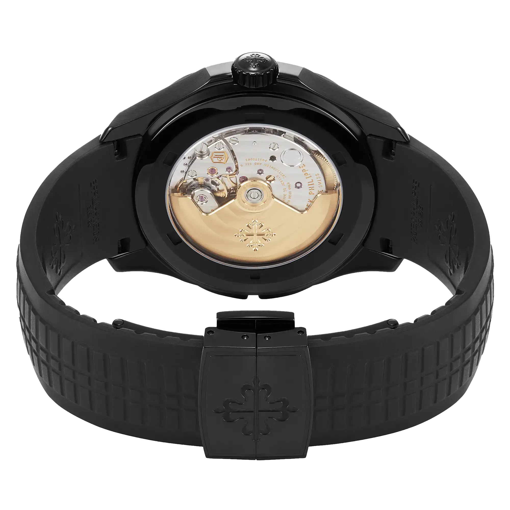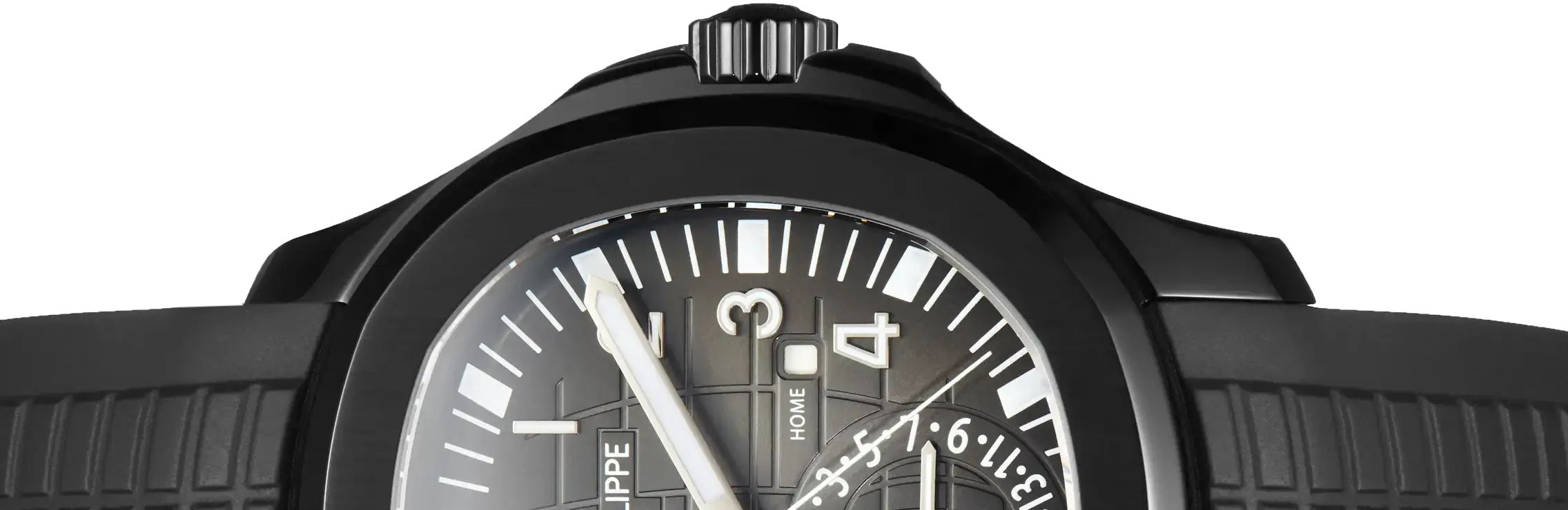 Unsere charakteristische schwarze DLC-Beschichtung verbindet sich mit dem gebürsteten und polierten Aquanaut-Gehäuse und unterstreicht so das sportliche Design der Uhr, während sie das originelle Zifferblatt und den darin enthaltenen Handapparat.