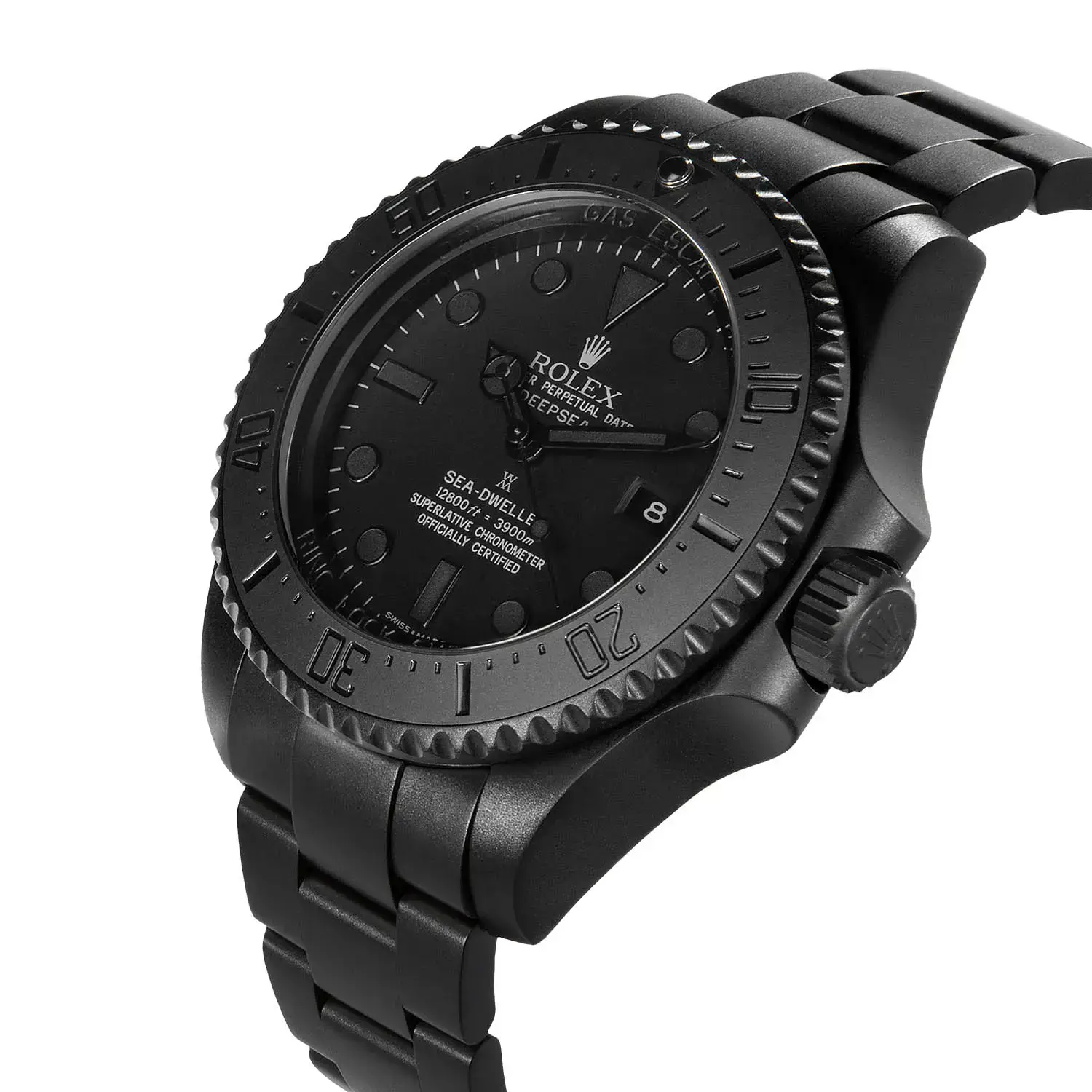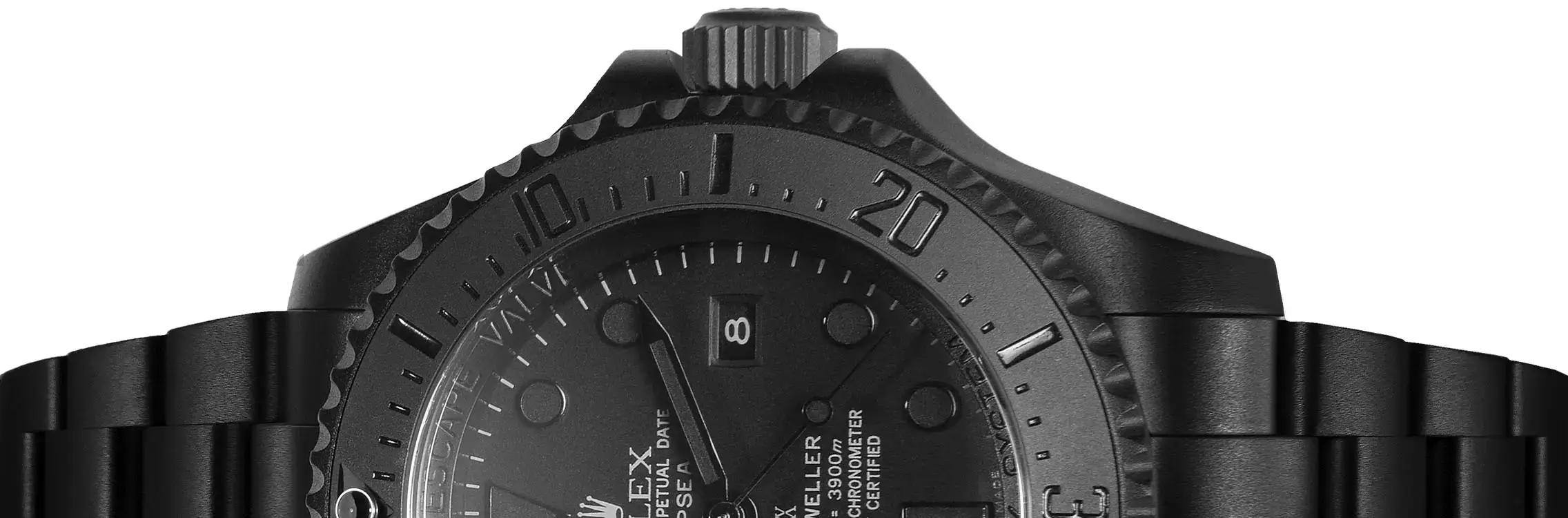 Our Anpassung der Rolex Deepsea, dem größten Modell der Rolex-Palette, hebt die Ästhetik der Uhr auf ein neues Niveau. Als Teil unserer Blacklock-Kollektion und als eines von 25 Exemplaren weltweit besticht die Uhr durch ihre rein schwarze Farbgebung.